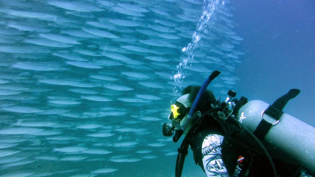 Our fist dive was at Twin peaks, just a casual dive around the deeper part of the pinnacle where we bumped into a huge school of barracuda.