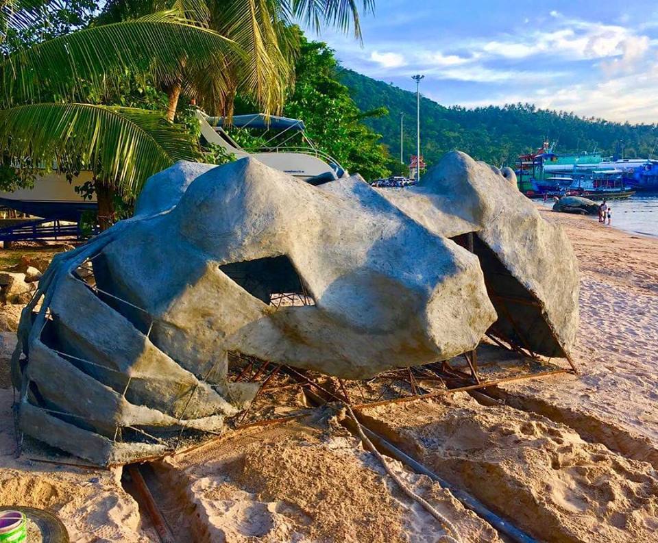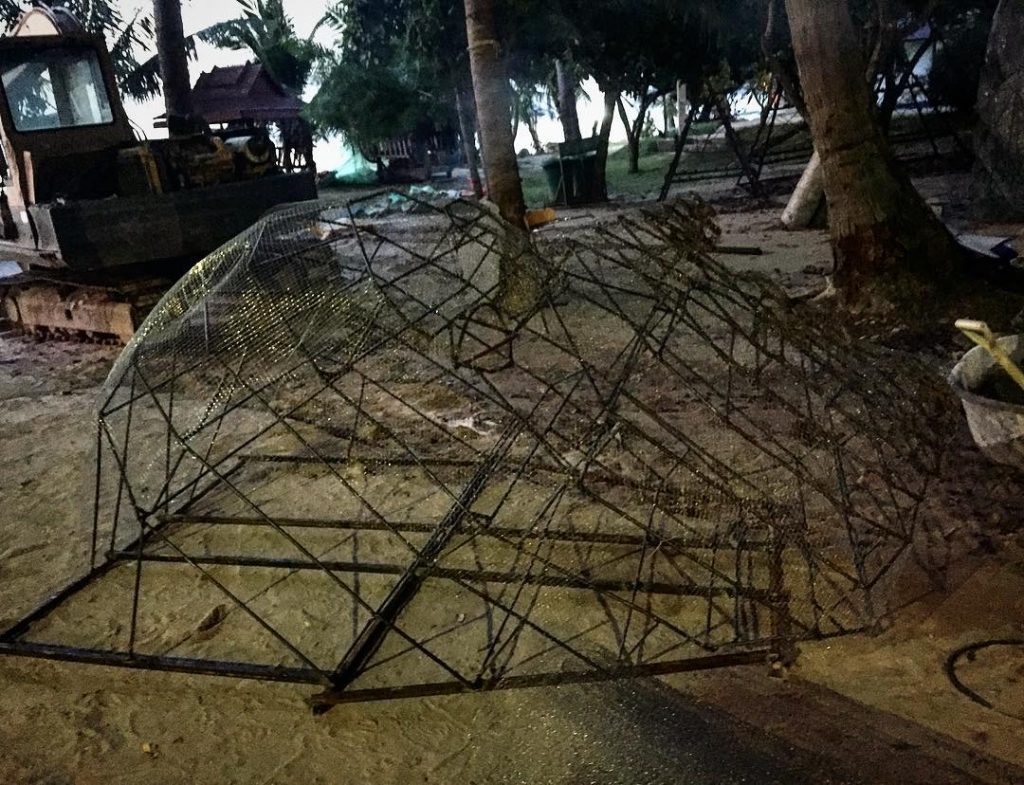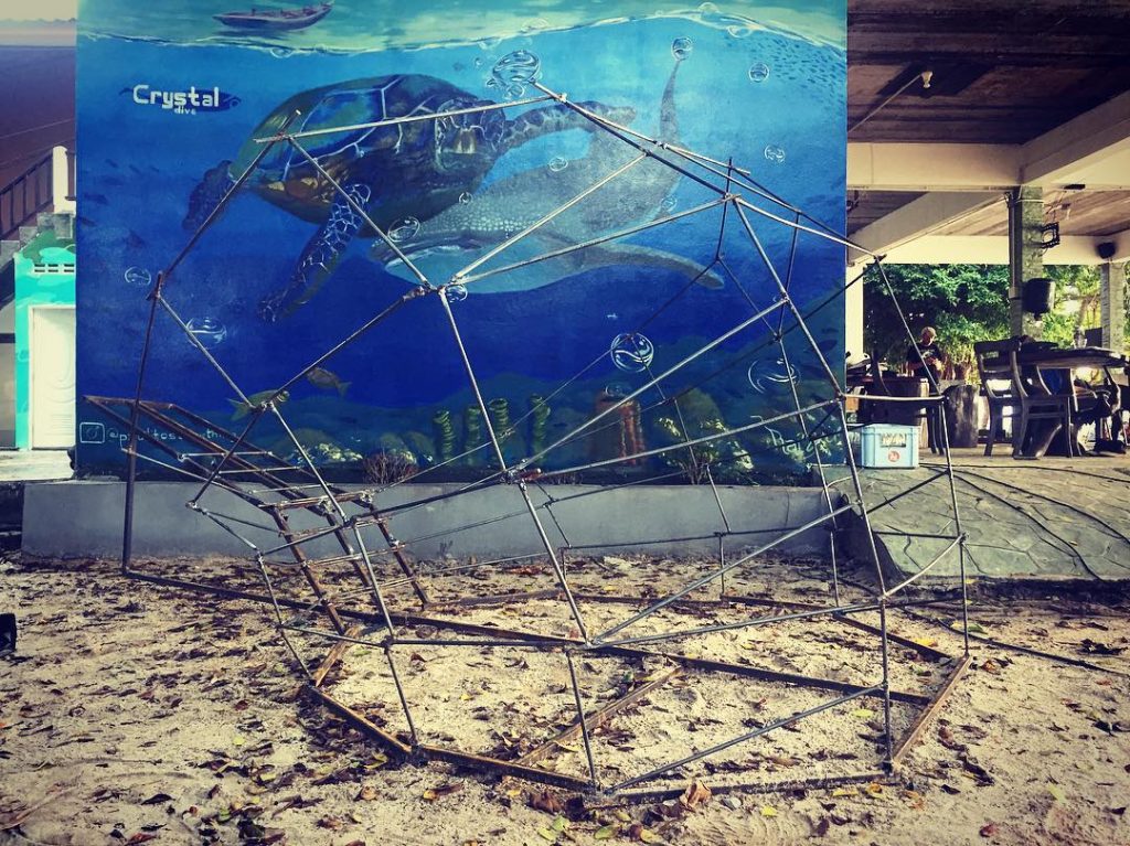 Simon and I are both well.  We’ve both been working and we’re still trying to finish off the Junkyard expansion which has taken slightly longer than expected.  The center piece of the expansion which was created by ‘The Art Rising’ has been a real headache due to the shear size & weight of it.  This group first contacted me back in Feb 2018  where at that time they were building a playground in a Burmese refugee camp which I though was cool and thought it would be great to have them build an underwater structure that we could work in with all of our pyramids.  We did ask multiple times for a modular structure, something that would be easy to deploy, we talked about what materials would be best to use and that our deployment resources would be limited to lift bags, barrels and a longtail boat  ..and this is what they made 😀