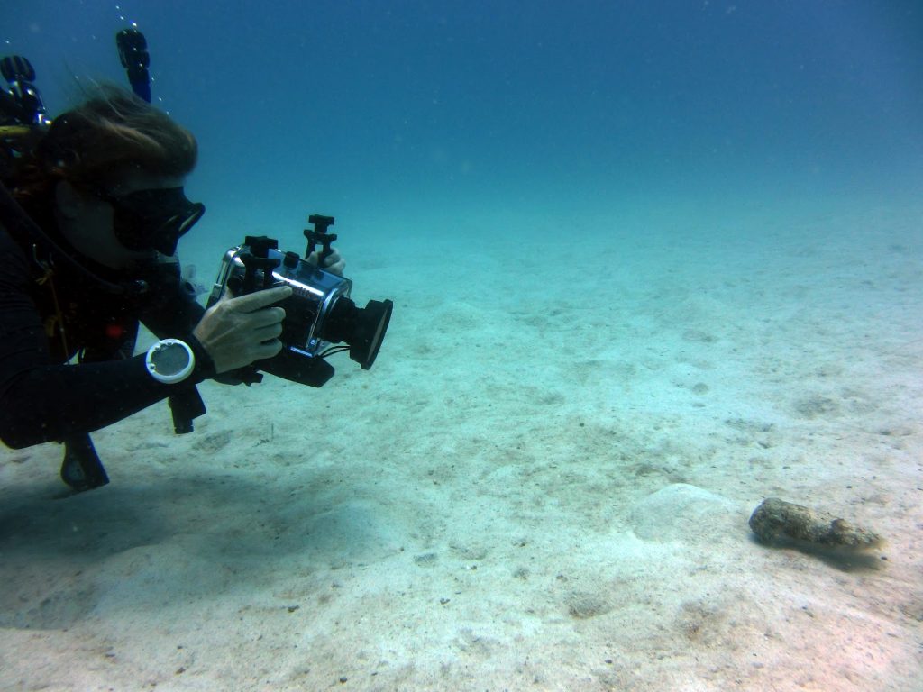 She took her video camera, and I took a stills camera..  We bumped into a Cuttlefish… pretty rare on Koh Tao, but the last 3 times I have been to Mango Bay I keep seeing the little fella!