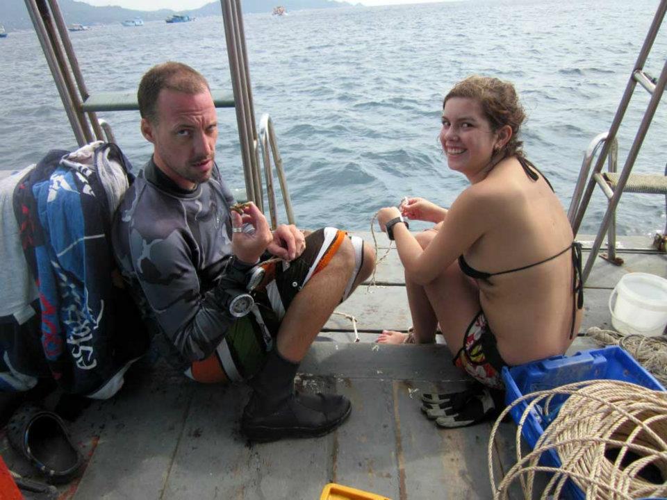 So it was action stations. Caitlin and I jumped in and guessed where they would be, descending 18m to sand. At this spot, all you could see was sand… no coral… nothing… not great when you want to do a search pattern… I started a search, and thankfully a few minutes later found our hard work laying there… PHEW!!!