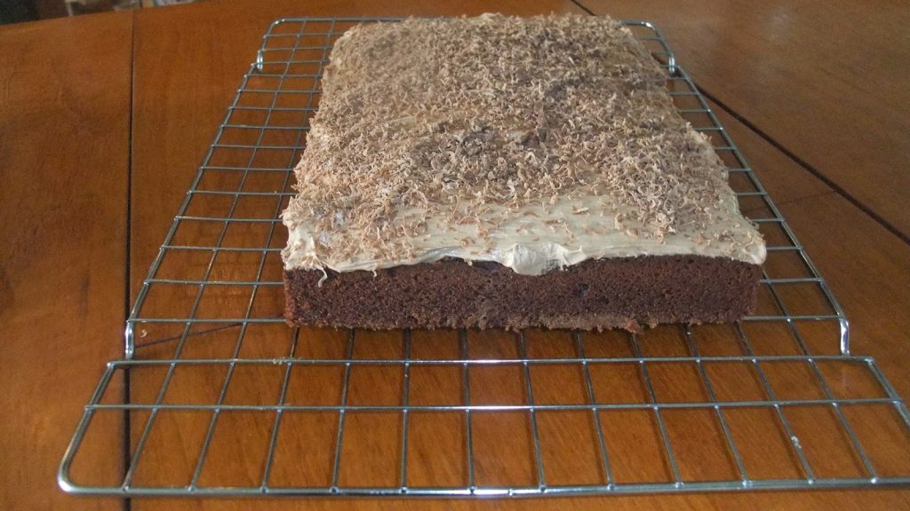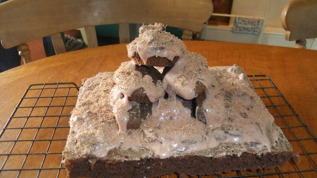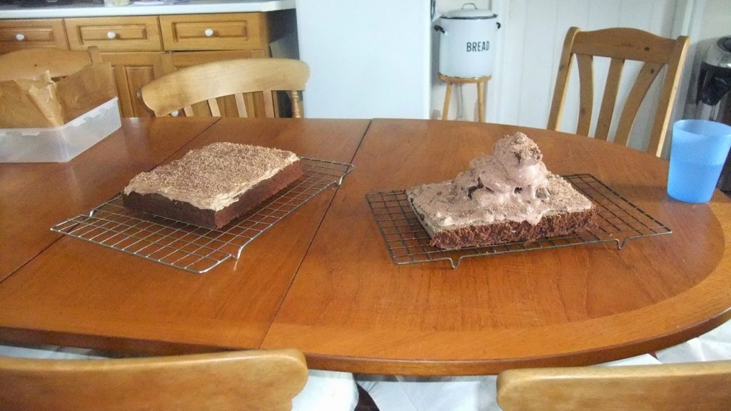 I paired up with Chloe and went for a traditional chocolate cake with butter icing and grated chocolate on top. While Simon and Iona went for a more imaginative cake