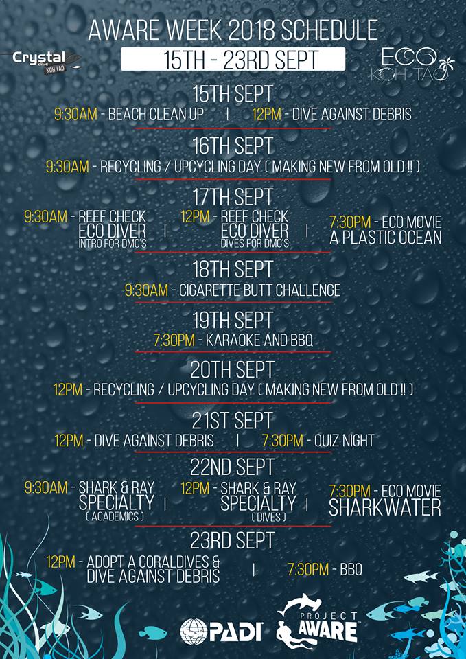 September has been a very busy month, not only with lots of family & friends Birthdays but we’ve been dealing with Eco Interns, courses and a week full of Eco activities. It’s all in aid of AWARE week, which is a celebration of the ocean. It took place globally from the 15th – 23rd September Aimed at empowering more divers to look after the underwater world. So a week full of conservation activities, pushing conservation specialty courses at reduced prices, creating awareness for vulnerable shark & ray species and empowering local communities to take positive actions for the protection of fragile aquatic environments, tackling pollution by taking positive actions etc