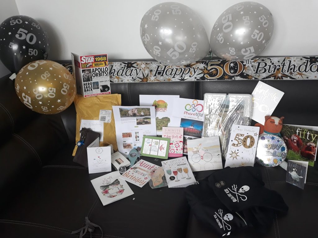 I had a thoroughly awesome day. Simon had done an amazing job with all the decorations (Thanks for sending those over Kate & Roger) …I was taken back by all of my birthday cards and pressies 😀 It’s not so bad being 50 as lots of people love me :-DAfter breakfast by the pool, which Simon had prepared, I mulled through my cards and then decided to be dropped off in Chaweng for a foot massage and seeing it was my birthday, I went wild and got a pedicure and manicure. It was so relaxing and as I was full of cold, it was just what the Dr had ordered. That evening we went out for a couple of drinks, watched a movie at the cinema and then enjoyed a takeaway back at the apartment with a glass of wine or two. I had a lovely day!
