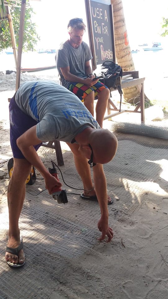 I’ve also arranged for some of the DMT’s (Dive master trainee’s) to give a hand making cages for the clam transplants. It’s funny as Nathan has not changed one bit  …he’s the same ole Nathan but Kailash his son, has grown up a lot and I think proper schooling has done him the world of good.
