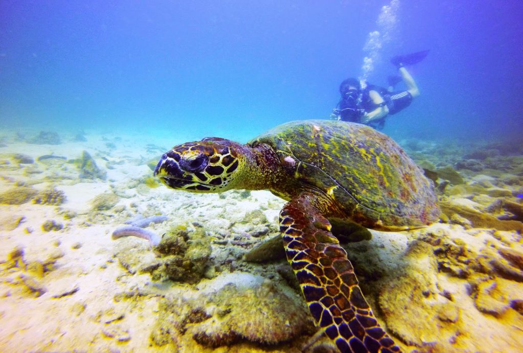 To be honest, its been a tough course. Buoyancy has been an issue, and with Monsoon, the visibility is very limited, leaving the student to get very disappointed with his shots. Only really on the first day of diving did he get lucky and film a turtle.