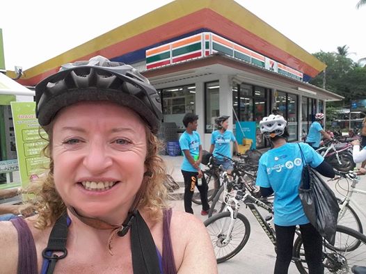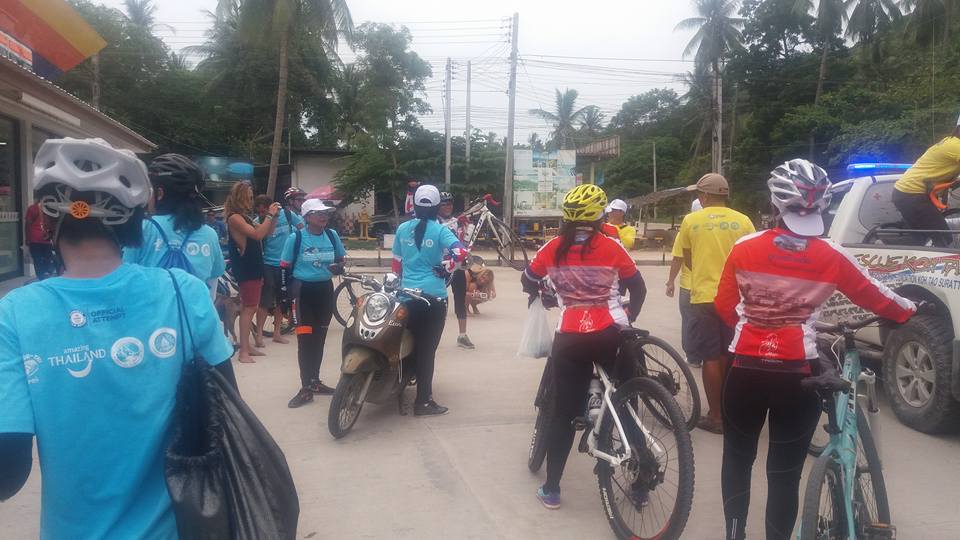 During the festival, so many things go on.  Today was ‘FREE’ day, where shops, restaurants and cafe’s give away free bottles of water, fruit, plates of food, sweets, cans of drinks, tea, coffee and also while that was going on, Koh Tao went for the Guiness book of records for ‘Clasping Wrists’  I think they did it.  I would have been involved but I was waiting for the sculpture to be judged.  I did join the cycle ride which was great fun.