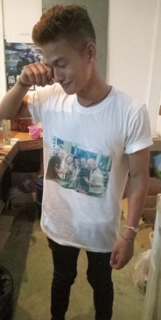 I got him a T Shirt printed so that he’s never for us 😀   He’s not actually crying in this photo.