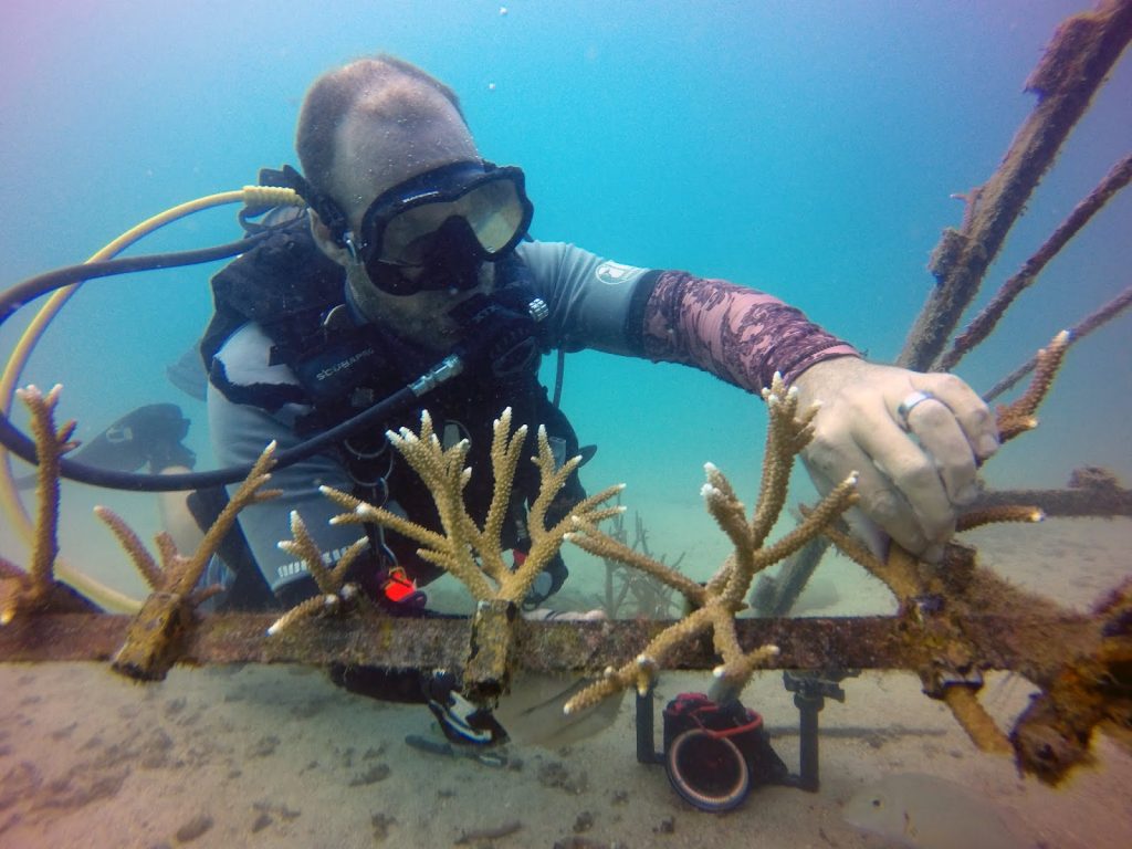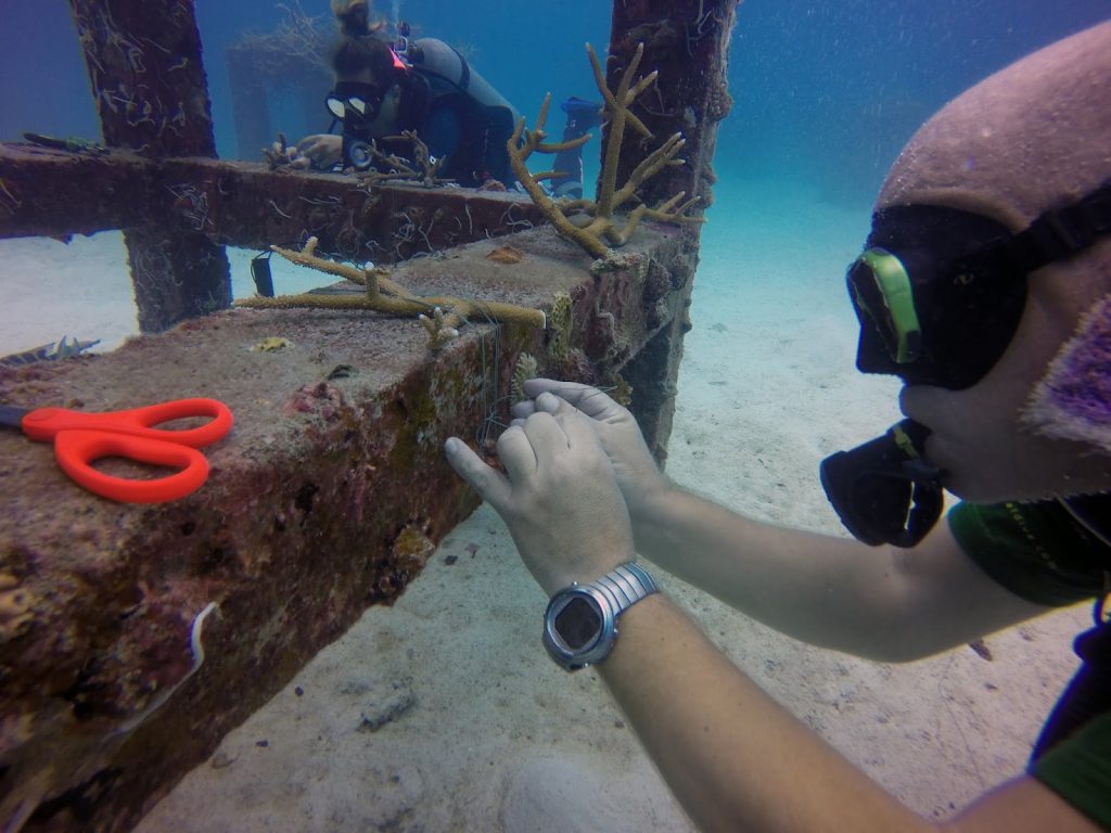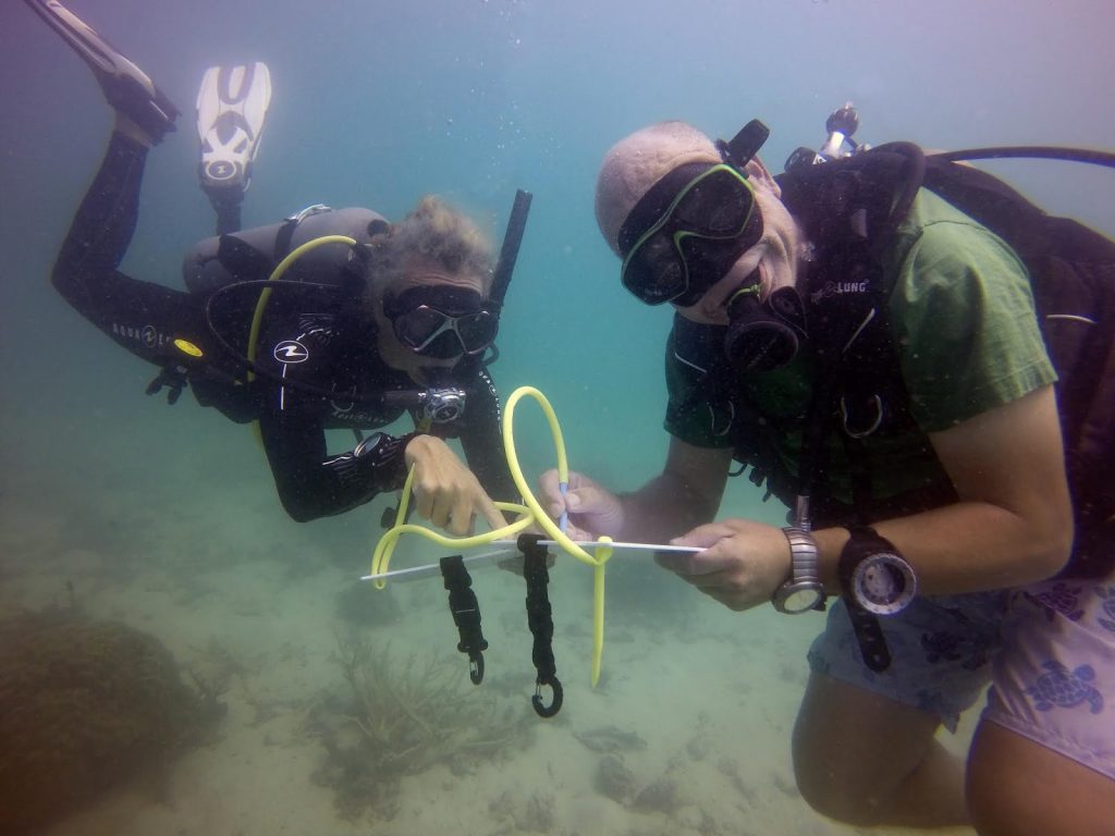 After students have done Reef Check and if the students are staying around for a while, I take them out and show them a few  coral transplant techniques, which I don’t charge for but I think I might in the future ;-D    As most of them find out, it’s a lot harder than it looks, especially to secure the corals to the substrate so the corals have got maximum contact and minimal movement.  After I demonstrate, they ‘ll have a go with a bit of rubble.  They’re usually thinking that they’ve done a good job when I come along and critique ..usually ending with them starting over 😀