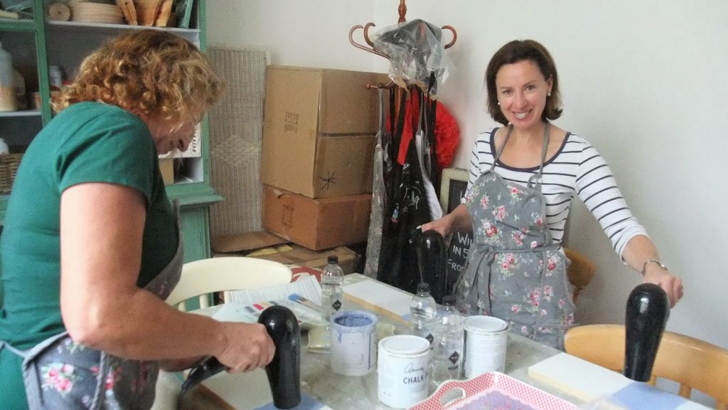 This morning my sisters, Rosie, Fiona and I attended ‘Decorative Techniques Workshop’, working with Annie Sloan, Chalk paints in Alton. It was great fun and very therapeutic.