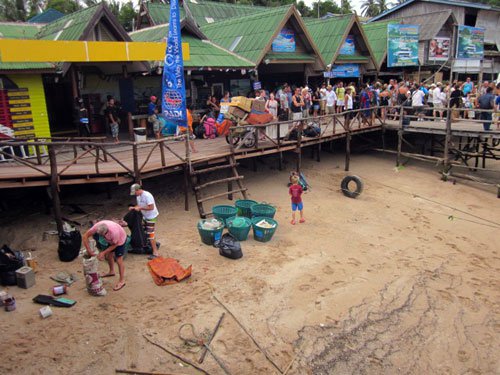In the morning, DMTs were scheduled to clean up around the Pier, where people arrive… To be honest, it was a crap heap… sooooo much rubbish… It was a very good hour spent picking up loads of plastic bottles, polystyrene containers, and glass.
