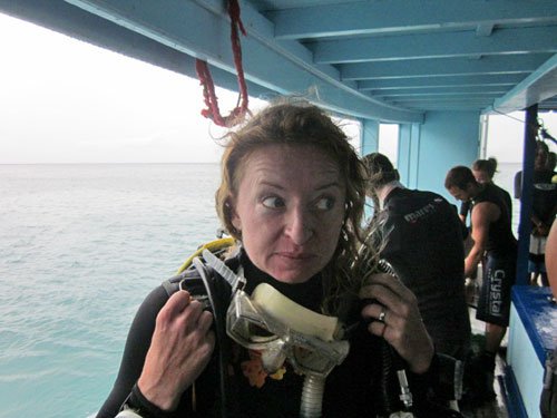 Then it was time for the dives… As I still have a crappy chest, I elected to do surface cover (arranging the boat, safety etc) … Typically of the past week, bad weather came in just as we got on the boat, and I got pretty wet and damp…. not too pleasing….