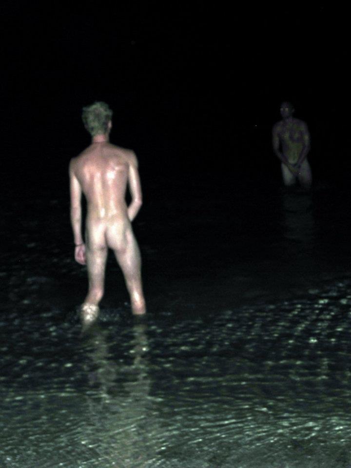 By the time we got there, people were very drunk. Simon & James played with the fire poi whilst I perched on one of the numerous beanbags chatting and watching several people charging into the sea fully clothed and naked ..not a nice sight.