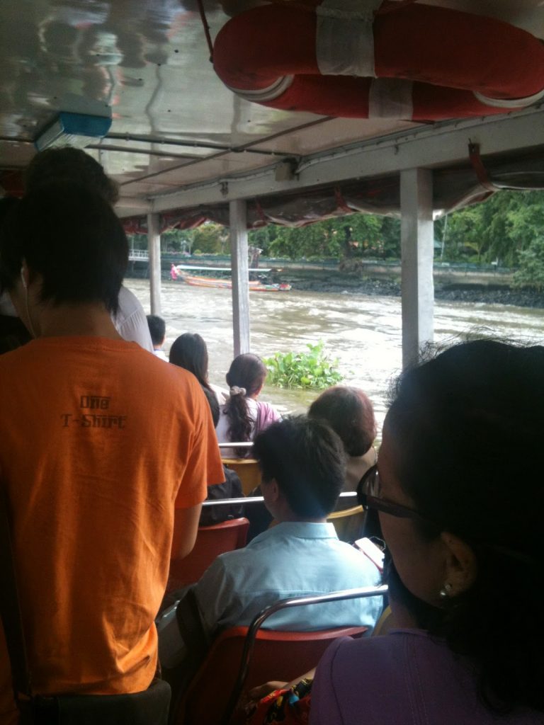 Anyway, after jumping on another train (the right one) I arrived at Saphan Taksin station where I exited and then walked underneath the station to the Central Pier. It didn’t help that there were 2 piers and obviously I went to the wrong one first 🙂 So with the time ticking, I waited for the Chao Phraya Express Boat. I must say that with various boats coming and going, it wasn’t clear as to which went where but I managed to hop on the right one.