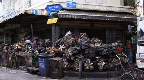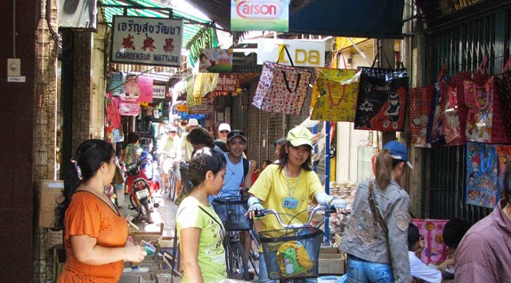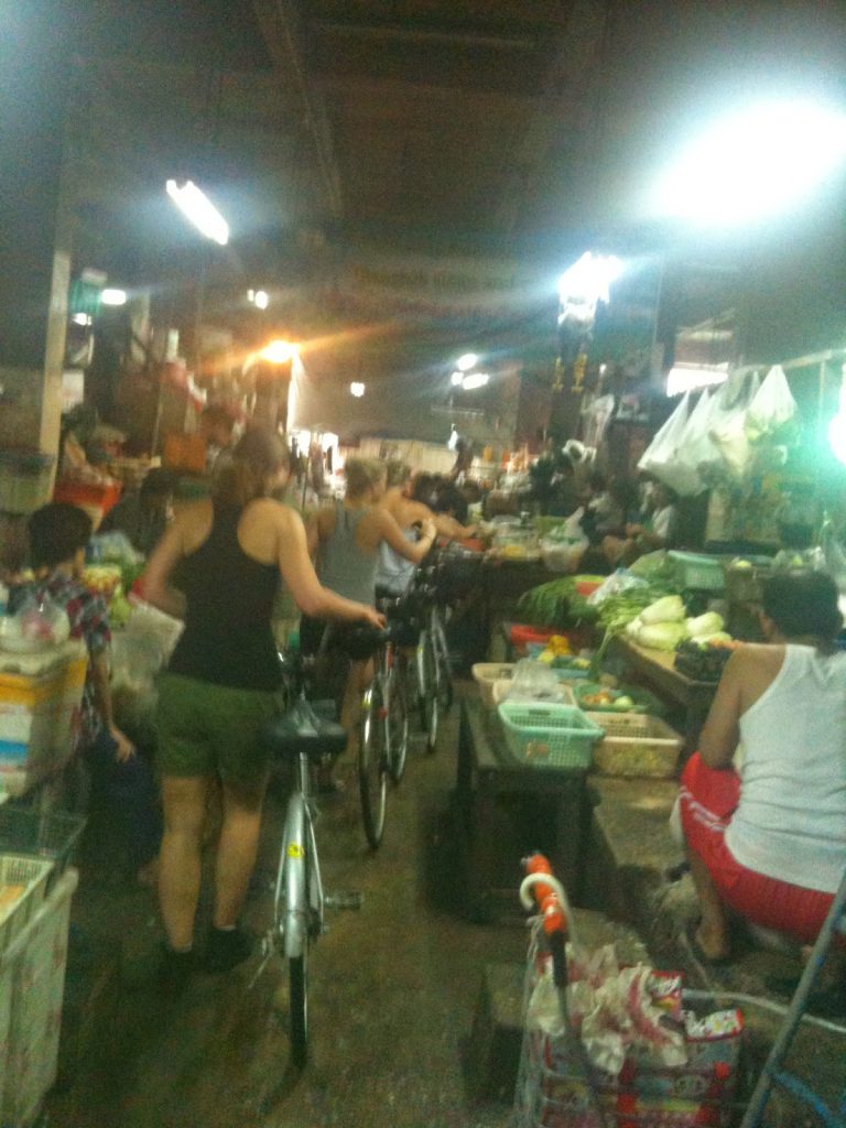 The 3 hour, now 2 1/2hr tour 😀 started in Chinatown (next bit from the web page) exploring its frenetic market environment. Winding through narrow alleyways, our senses come alive with the sights, sounds, and smells of a community in motion. We’ll pass by shop houses selling everything from Buddhist amulets to recycled truck engines. Locals worshiping at hidden temples, ritual paper burnings, and the omnipresent spirit house display evidence of a culture centuries in the making. Crossing the Chao Phraya River with majestic views of the city skyline behind us, we visit Thonburi, the historic third capital of Thailand. Contrasting chaotic Chinatown, peaceful elements of local Thai life abound as we cycle through diverse residential communities.