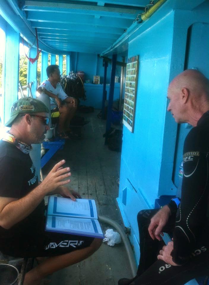 It turned out to be one big headache… not the course itself. Bob was actually very easy to teach, listened and learned and had done all his studying before we started the course. We had 3 great dives and watched him go off on his 4th dive all by himself. Jenny came on the boat for the last 2 dives, and had a little visit of the Catamaran at Tanote Bay. Bob now heads back into the jungle on the Mainland to continue building his house. Well done Bob.