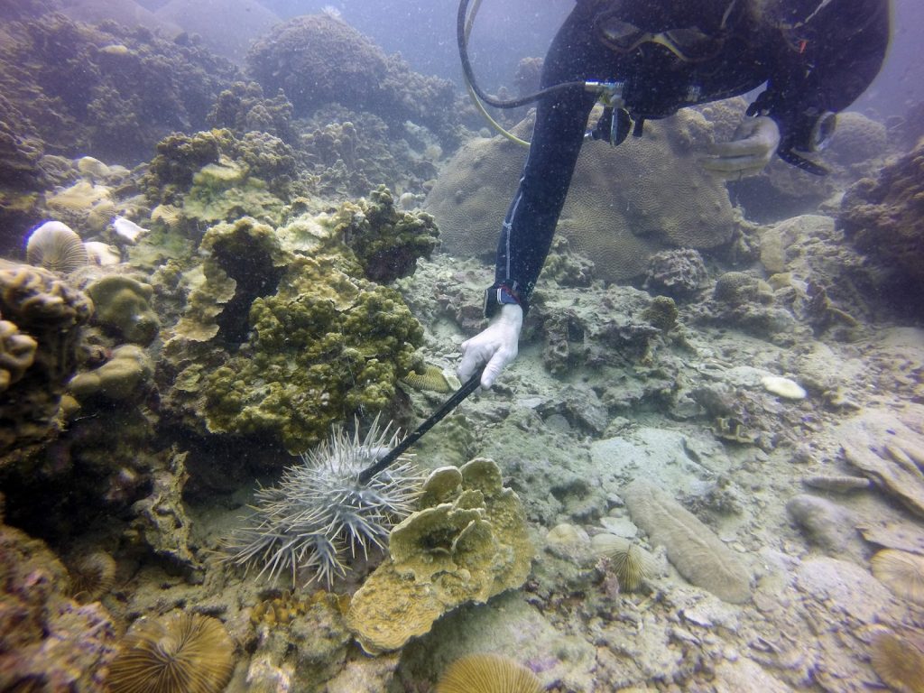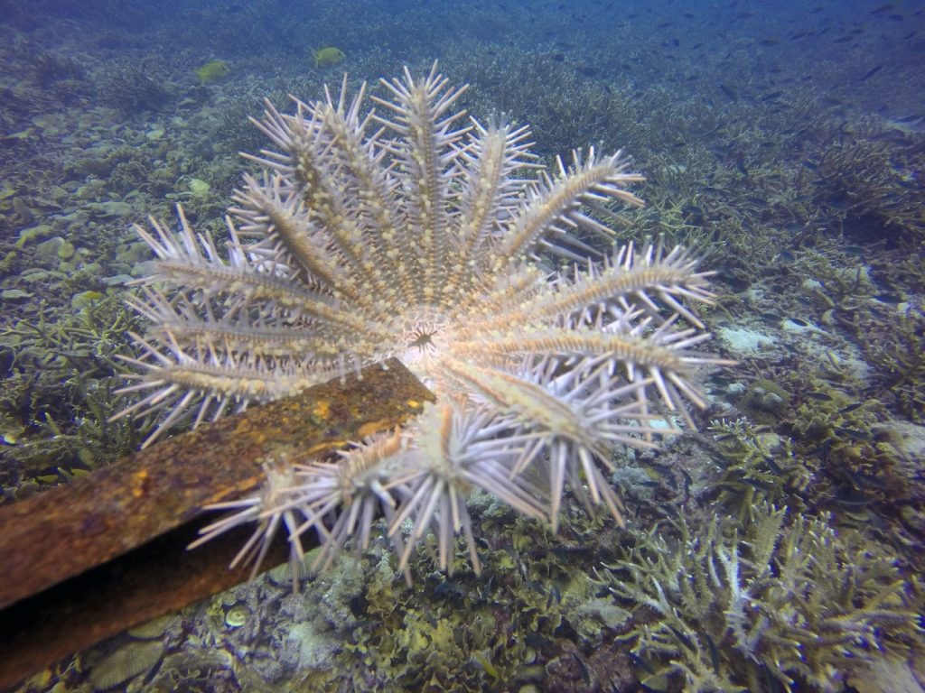 We’ve been out collecting coral eating ‘Crown of Thorns’ which has tested Darren. Not only does he have to measure, note the depth and count how many arms these starfish have (research purposes) I pick them up with some large long tongs and then put them in a sack which he has to dive about with 😀 So all n all, he’s been put through his paces LOL