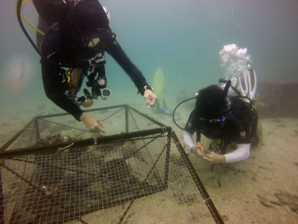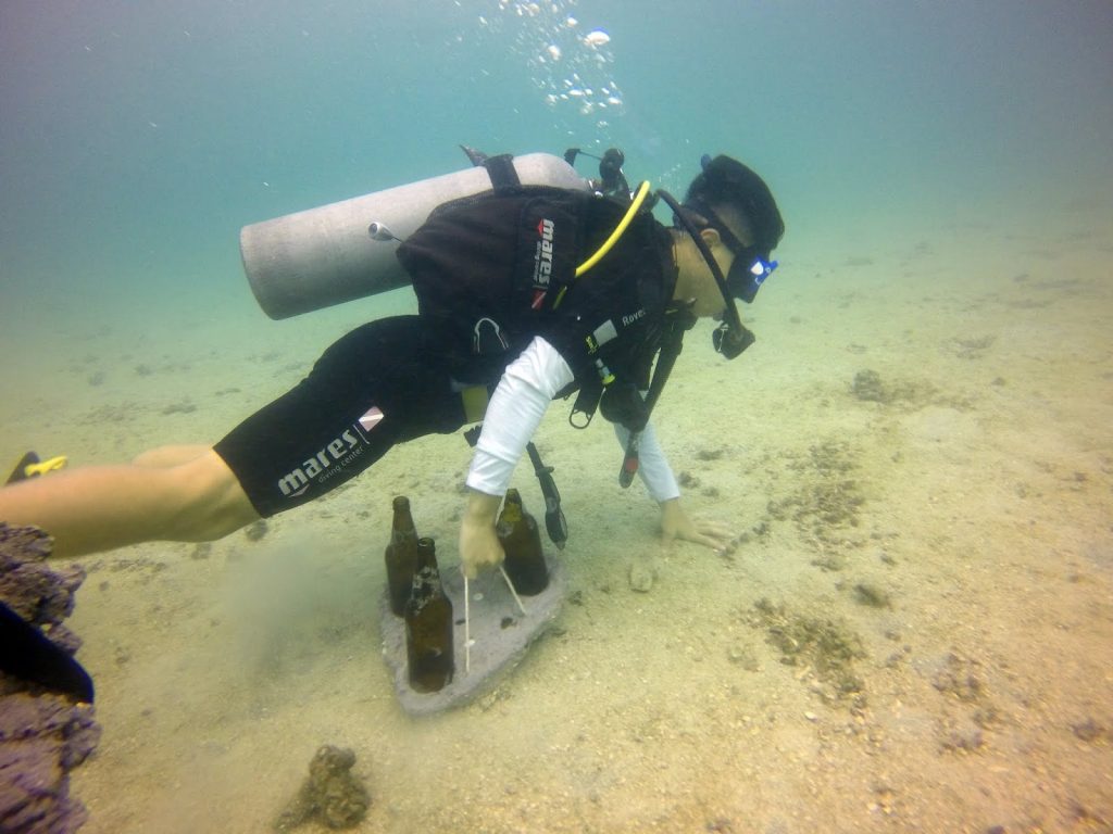 Earlier on in the year, we had a couple of groups from India that made bottle nurseries, well we finally got around to putting them on the long tail and deploying them at Junkyard. We’ve not put any corals in them yet, as we are still waiting on approval from the DMCR to do anything.Â