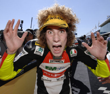 Marco Simoncelli was an amazing talent. A wild boy with Sideshow Bob style hair…. he was a champion in the 250cc class before he hit the MotoGP class.. Touted to be the next “Rossi” he had a crazy start to his season with some wild moves, but during the latter parts of the season, he came into his own, getting great times, and podium finishes and you could see the future in him.