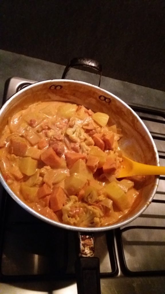 After showering, I got dressed and jumped on my bike and headed down to Crystal, stopping on the way to order water which has yet to be delivered. At Crystal I caught up with Simon and gave him some welcomed nibbles of peanuts and an big juicy red apple 😀 I only stayed for 20 minutes or so and then made a plan to cook a veggie curry. So on my way back to the house I did a shop and then cycled home to make a start on this evenings culinary delights. I’m not the best at creating but I think I’ve done OK