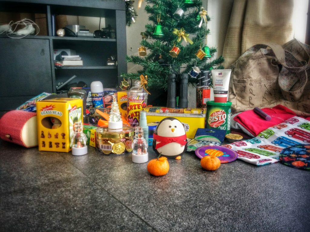 Jenny, Kirsty and I all sat around opening up our various pressies… This year we got so many cool little pressies.. Sweeties, T-shirts, tea towels… loads of stuff……Rosie even managed to send 2 mince pies… I have no idea how they survived!