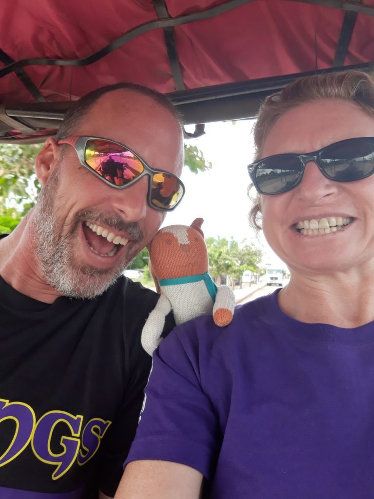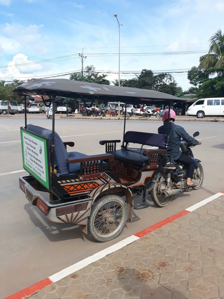 We caught the 11 pm night ferry from Koh Tao and arrived at Chumphon around 5am both a little groggy.  We didn’t have to wait too long before the mini bus arrived to take us to Chumphon airport for our flight to Siem Reap, Cambodia.   The flight was good, only just over an hour long and at the airport we had our very own limousine waiting  …sorry, that should Tuk Tuk which was even better.  So much fun and so Cambodian 😀  Maybe after a 20 minute ride we arrived at our apartment/hotel where we were glad to unpack, shower and just chill before we ventured out and booked a FULL day cycling, around 3 of the Angkor Temples   YIPEEEE!!!