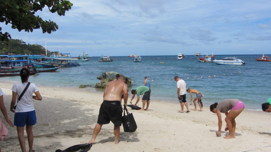It’s been busy. I finished an Open Water course yesterday morning and then went straight out on the boat with 17 DMTs (Dive Masters Trainee’s) for the Dive Site Clean Up at Lighthouse Bay. As Si was starting an Advanced course and not diving till the afternoon, he was able to get the DMT’s organised for the morning Beach Clean Up. Fortunately there wasn’t a huge amount of rubbish on the dive, always a good sign but the mornings beach clean up group collected around 5 bin bags worth. It’s amazing how much rubbish washes up.