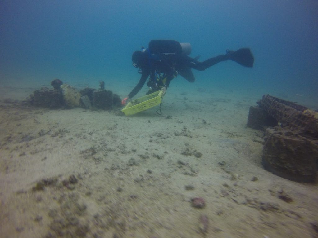 Diving in this monsoon, has it’s bonuses.  You’re going to get wet anyway, so it’s a good time to get those underwater jobs done.   We’ve tidied our artificial dive site by consolidating all the rubble under the domes.  This in turn provides a nice little habitat for all the small fish and invertebrates.  We’ve cleaned all of our coral nurseries that were getting overgrown with ascidians, algae and sponge.  We’re going to, when it’s not raining, make some new structures and deploy them ready for when we get the OK from the DMCR.   Also on the agenda we are going to move some of our Giant Clams that are have been in cages for the last 18 months, onto the natural reef and also select an area of reef in need of rehabilitation and start some simple research on coral transplants.  Lots to get on with, as well as teaching.