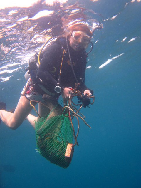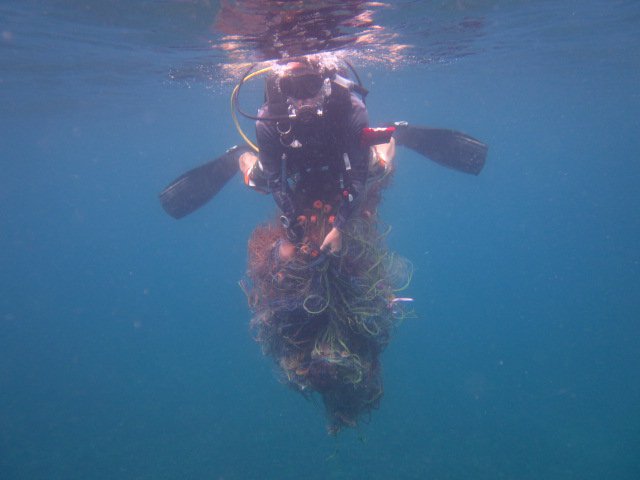 About 20 minutes into the dive, we came across a massive net, which took another 30 minutes to cut coral and other things out, to release the net from the bottom. Carrying it back to the boat was difficult, but we managed.