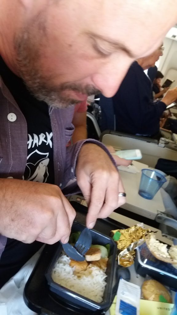 The flights to Las Vegas were long but comfortable.  It was our first time flying with United Airlines, they were pretty good even though there cabin crew looked as though they were out of The Adams Family.  The food was OK a little difficult to eat with mini plastic cutlery and Si’s vegetarian food had a lot of peppers 🙁