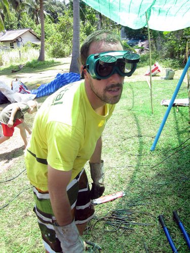 This morning we’re sat silence in ‘Cafe Del Sol’ tapping away on our pc’s, munching breaky playing catch up. Since our visa run we’ve been busy. On the 1st Sept we helped out some more with Bouyancy world construction. I left around mid day to take two eco students on dives to Aow Leuk to check out the coral nurseries while Si carried on welding for most of the day.