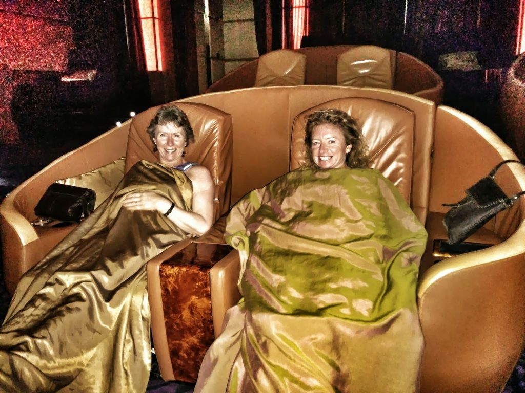 After a freebie foot massage, food and drinks for the film… Jen and Rosie settled down for the movie…. Don’t you wish that English cinemas had seats like these!