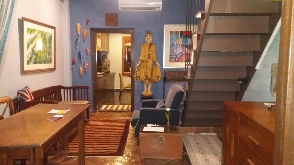 The journey across to Samui was rough but not too bad. I think the 2 seasickness tablets that we took helped. I was sat next to a little boy who puked all the way. Not the nicest of things. Off the ferry it was a quick minibus ride to the airport. Samui was just as wet and flooded as Koh Tao. Arriving at the airport we were eager to get checked in and chill but it was chaos. Some domestic flights had been cancelled due to the weather, by the looks of things most international flights were still going out but trying to get information was a nightmare. We took refuge and went to the Irish bar for a drink 😀 Flights slightly delayed we made it safe and sound to KL just in time for the last leg of our journey to Penang where we were met and taken to our lovely colonial accommodation.
