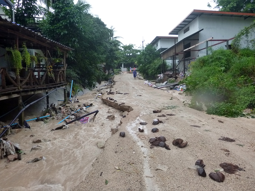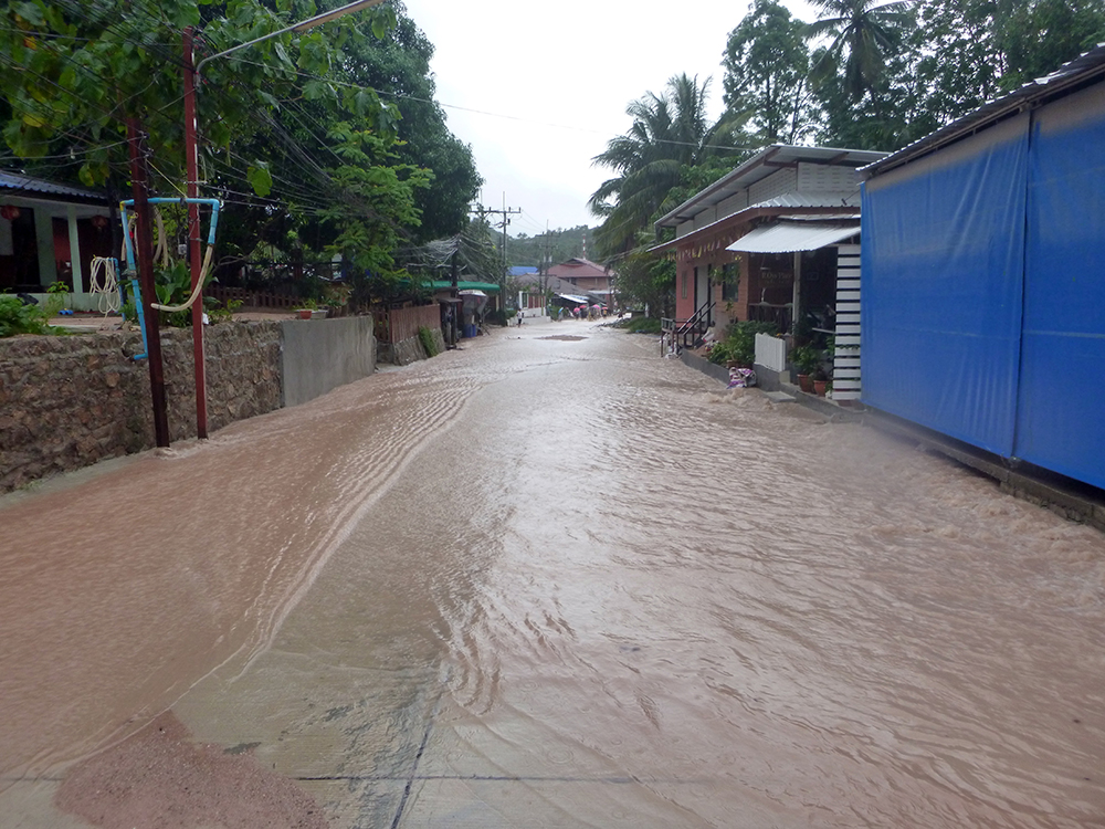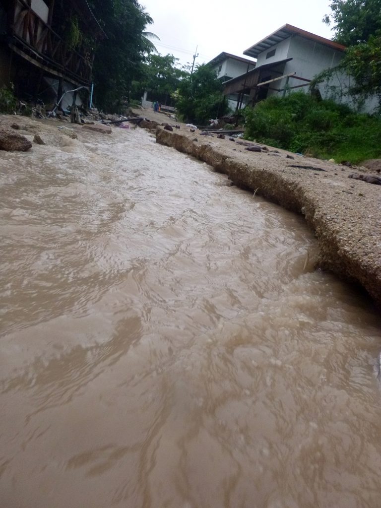 It’s been a really wet new year so far ..we’re getting the brunt end of a storm which passed over the Philippines and it’s been torrential rain for the past 36 hours …flooding and water up to a meter in Chalok and Sairee. The run off into the ocean has been horrible. We went diving yesterday and the first couple of meters was like diving in mud, you couldn’t see a thing but below that was fine, 5-8 meters.