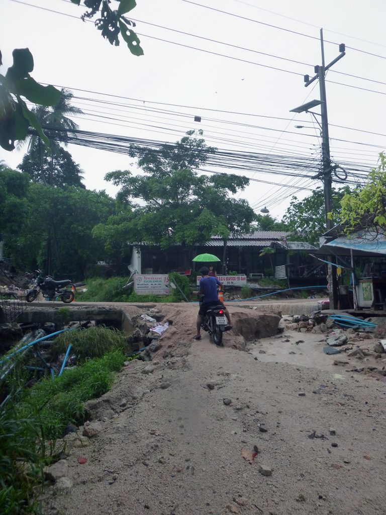 The next morning, after a heavy night of rain we spent most of the time indoors only venturing out to see what chaos the rain had caused and to collect our bike / motorbike from Crystal.