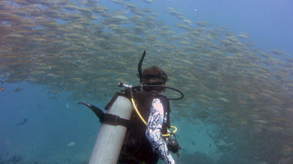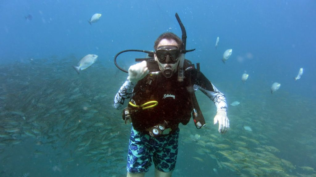 Anyway, today we hired Crystals newest addition, a little fishing boat which you can hire out and go snorkeling/diving on.  With just 2 crew and the 6 of us, we set off around the island stopping at a few bays as and when we fancied.   The first bay we decided to stop at was ‘Hing Wong’  At first we all went for a bit of a snorkel and then Simon and I took Chris for a dive.