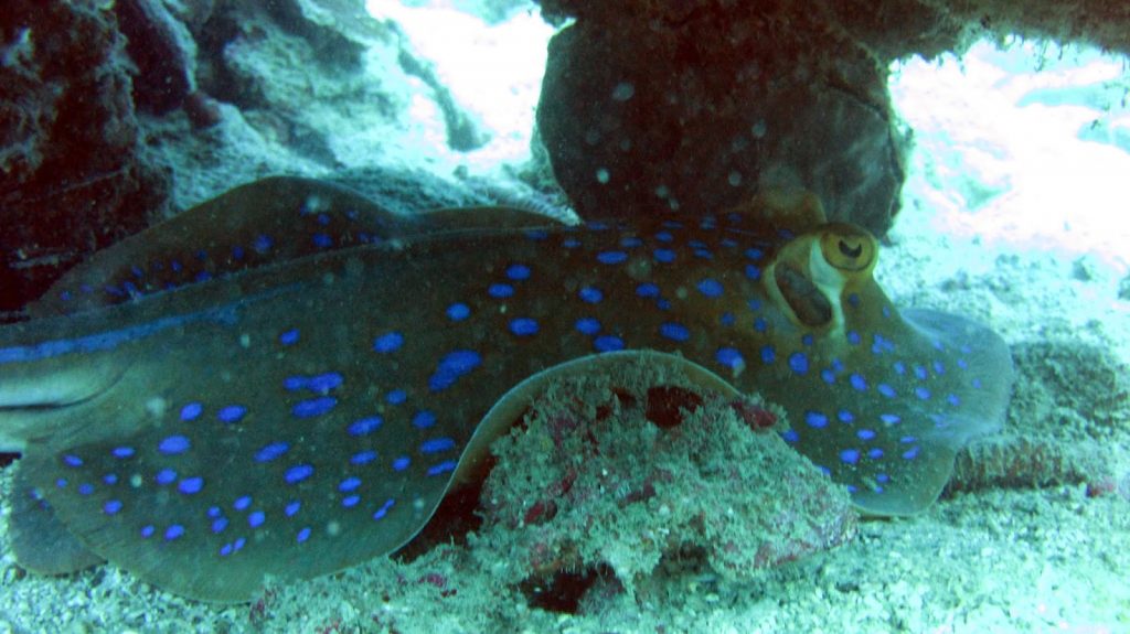 Our Final stop was ‘Pottery’ a lovely and unappreciated dive site.  It’s very shallow and an ideal location to take Fiona and Chris for a lovely dusk dive.  We saw an incredible amount of life.  Moray Eels, Puffa Fish, Trigger Fish, Blue Spotted Sting rays to name but a few