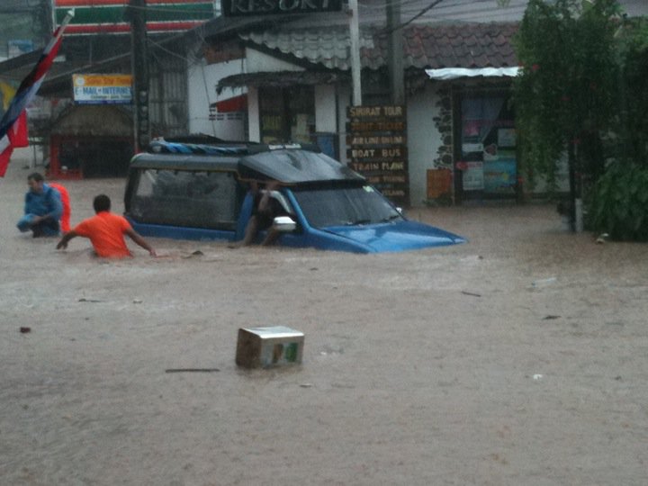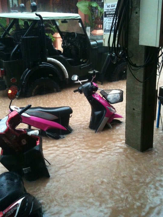 Meanwhile, in Koh Tao…. yesterday they had a return of the Monsoon in a big way.. Major rainfall in 1 hour caused this…