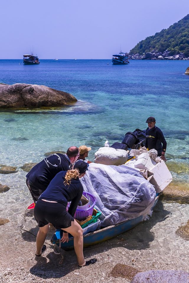 Bags filled previously but needed rebagging Only way to take the bags off, canoe to dive boatDisheartening