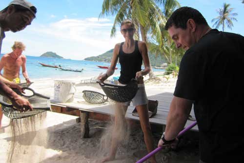 A couple of hours had passed and the sifting had stopped, rubbish had been collected and before breaking for lunch, everyone helped to load all the gear up onto the longtail.
