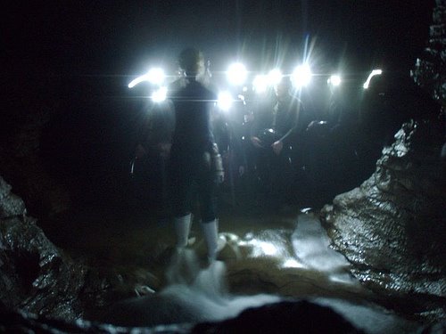 In parts of the Waitomo Caves, they have something called Black Water Rafting. Basically, you stick a helmet on your head, go into the cave, wade into FREEZING water, jump on a rubber tube, and generally freeze your ass off until 3 hours of climbing, walking and tubing…… you finally appear at an exit for the cave.