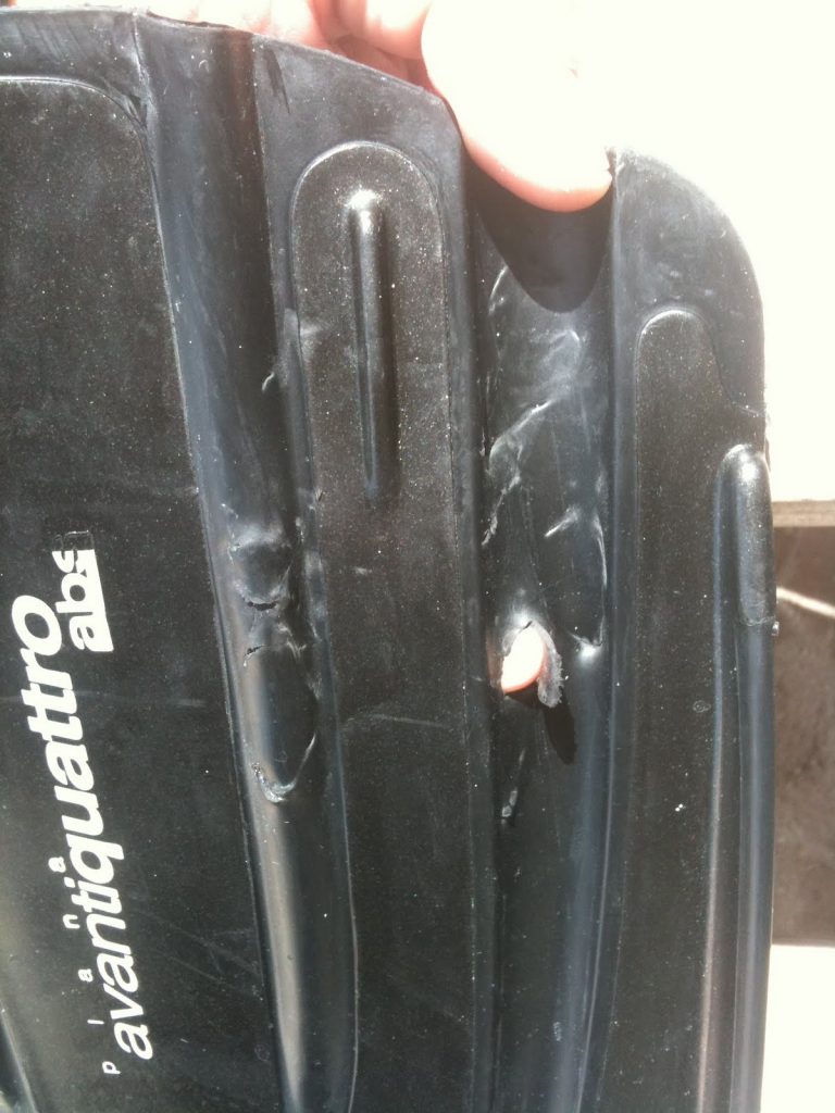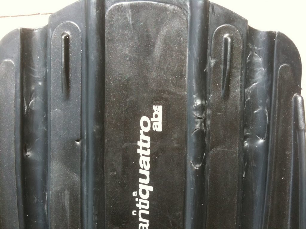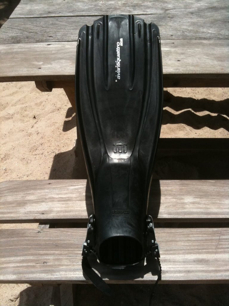Finally he left, and after checking that my 2 students were okay, I looked around to see him coming yet again for another go…and then eventually he left. Then I examined my fins…. my brand new fins…. destroyed!