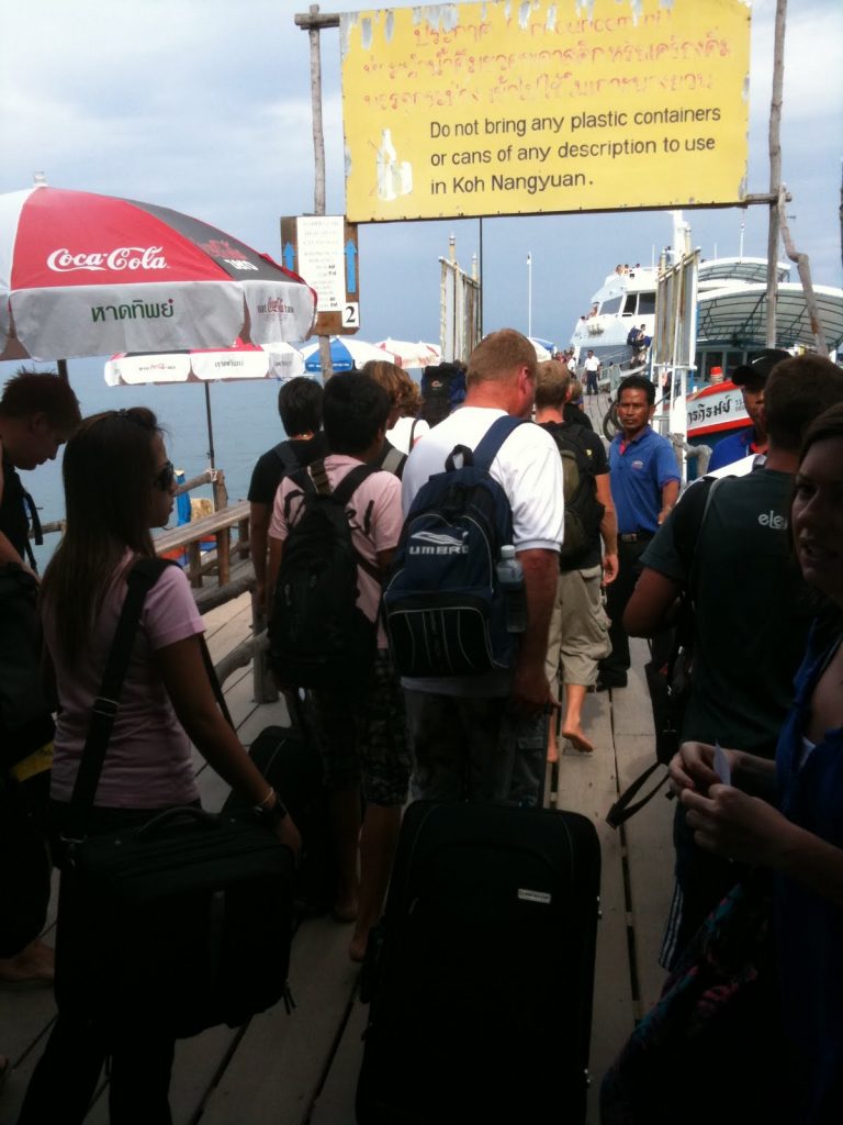We woke early and headed down to the ferry terminal around 9am to meet Scott before he caught the 9.30 boat to Koh Samui for the last leg of his journey. After hugs, slaps on the back were exchanged and tears wiped from our cheeks we watched him toodle off down the pier, his head hung low and bag in tow looking back occassionally to see us waving ridiculously with joy ;-D  LOL