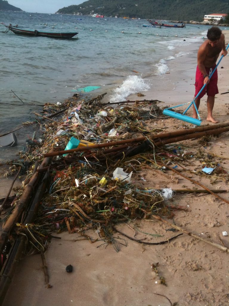 However, around 3 pm, a huge pile of crap washed up. I went down to start clearing up, and soon a few more people gave a hand… around 15 in all.