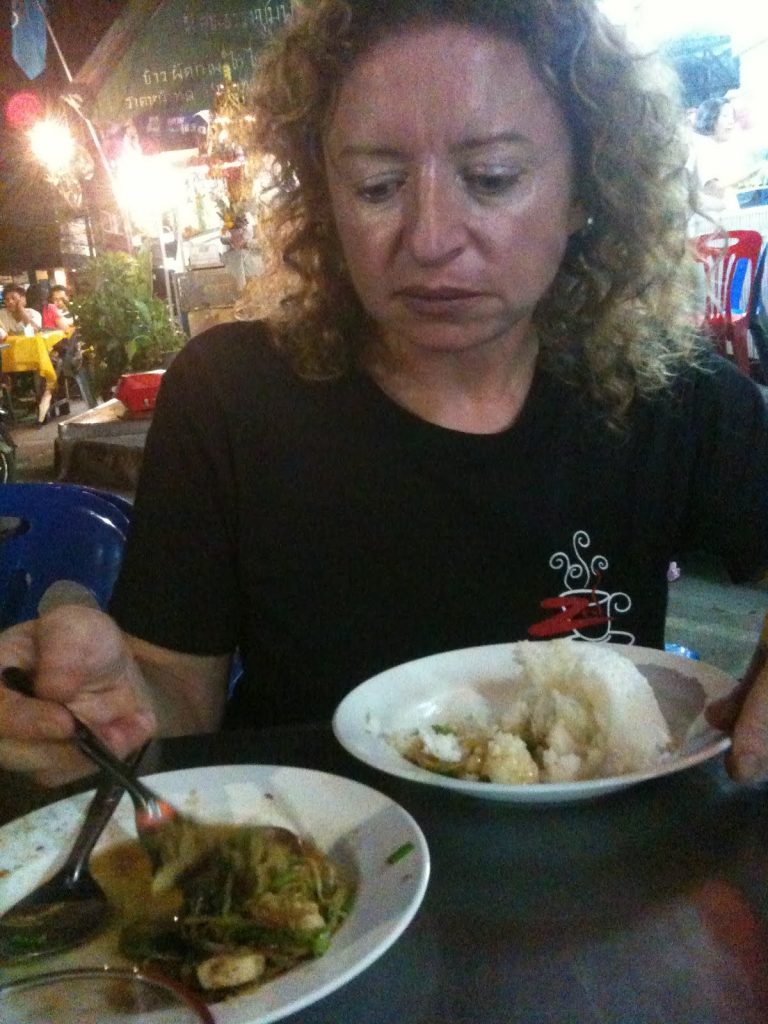 Eating dinner on the street and a couple of Singhas, and it was bedtime… and up at 5.15am to catch the boat back to Koh Tao.