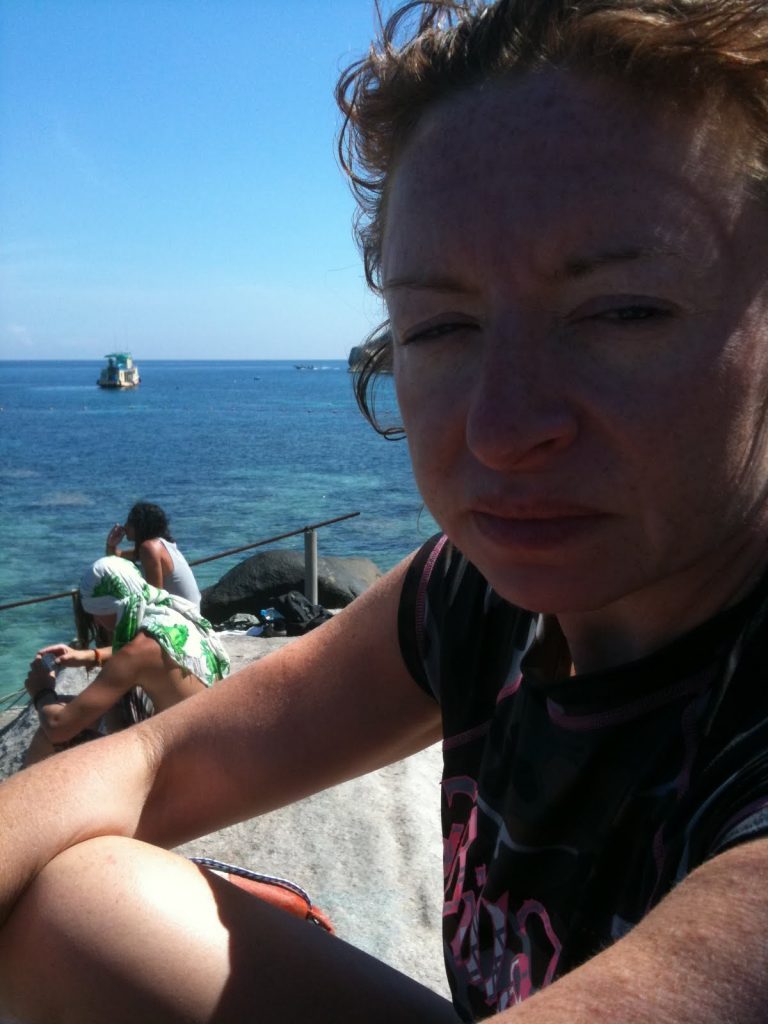 Anyway getting out was pretty tricky, I should have remembered to swim around to where we got in originally as I had done previously with Alan & Heidi but we both decided to take our fins off and climb across the rocks. I didnt have much success, the rock surface was so slippery, I ended up walking between the rocks and still slipped, cutting my leg in the process. DOH!