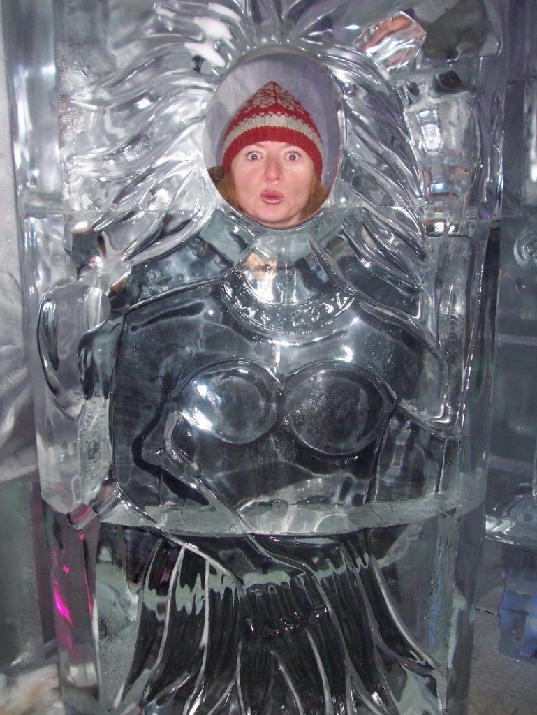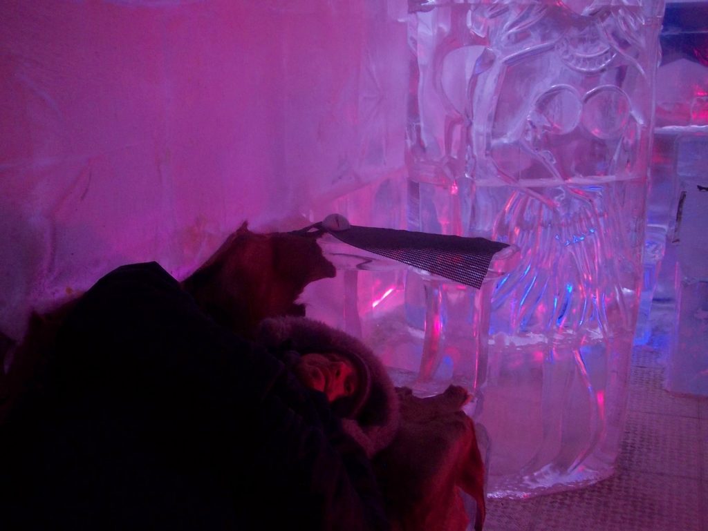 Last night we walked into town…. freezing our butts off… and decided to go to the Boiler Room Bar before heading into the Minus 5 bar, which is a bar made completely of ice! You are only allowed in for 30 minutes by law due to possible hypothermia… the temperature inside was -7.7 degrees. Even our vodka cocktail glasses were made of ice… Groovy!