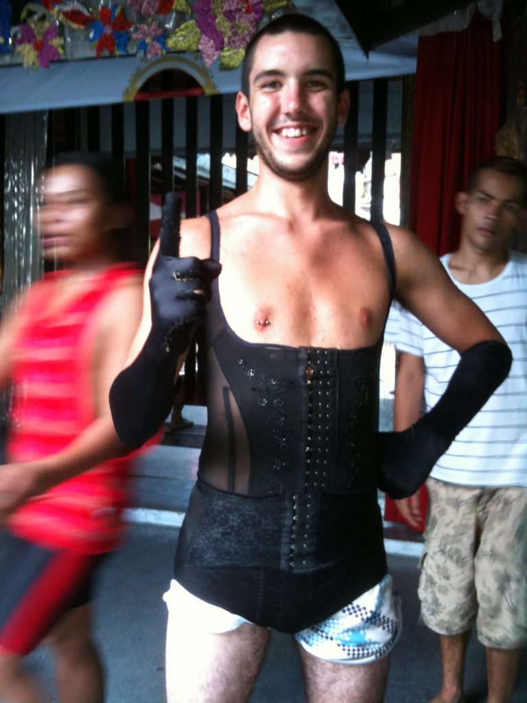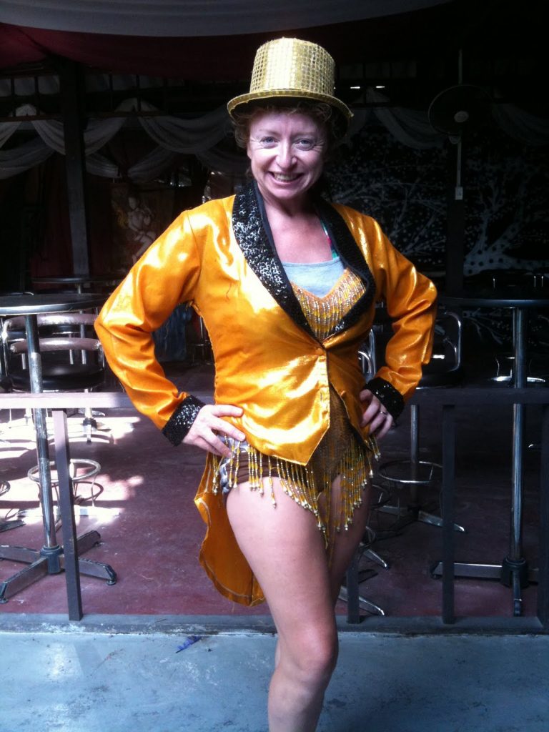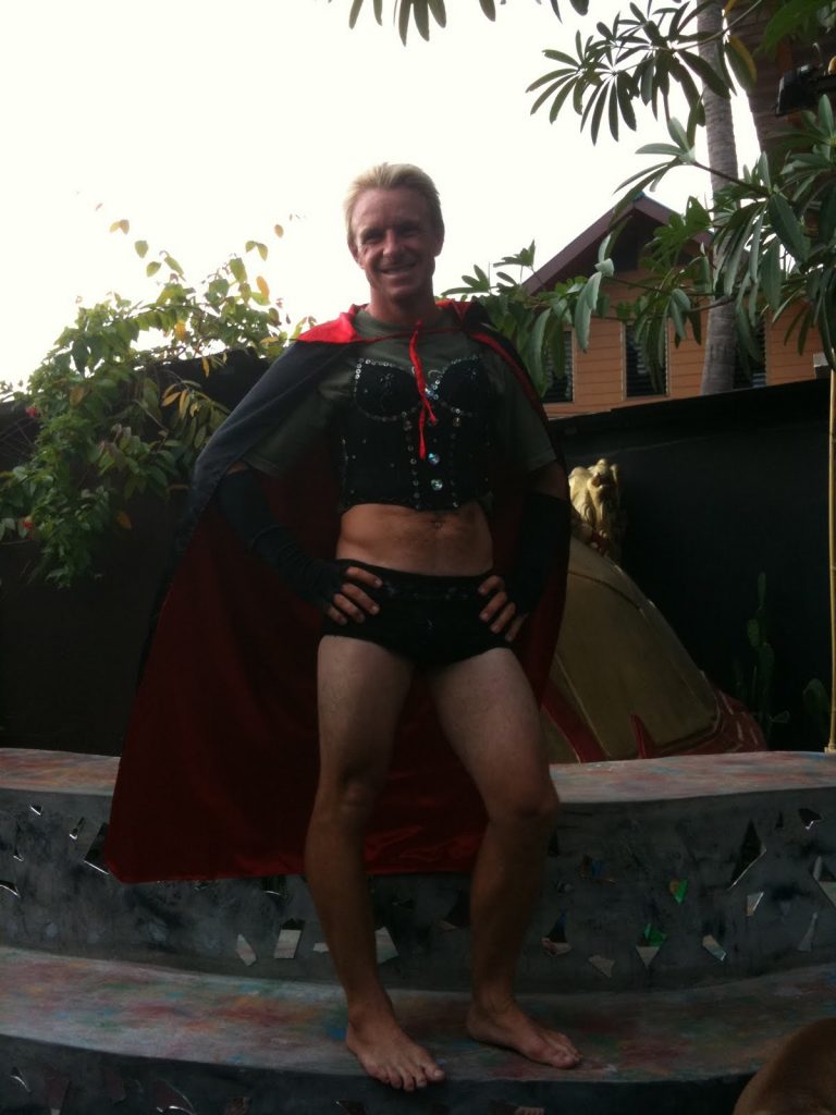 After Simon had sorted his student out with all his paperwork, went home to chill and then what seemed only half hour or so, jumped on the bike and met Nathan and Rob at the cabaret bar to see what costumes they had. After much laughter as you can see from pics we were sorted.