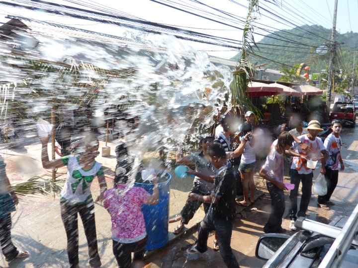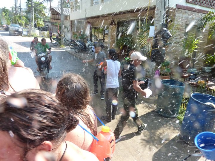 There were taxi’s (pickups) crammed full, travelling from one end of the island to the other, just firing water at everyone passing and when taxi’s passed it was chaos 😀 People on mopeds, bikes, foot armed up with supersoakers, such great fun.