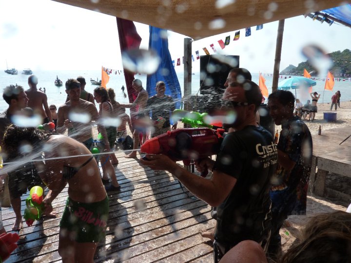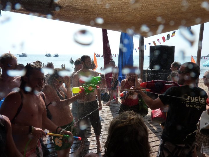 At ‘Vibe’ a vast amount of soaked Crystal people were shooting each other, playing around in the sea and dancing along with the band that was playing. I just couldnt get over the warmth of the sea when I went to refil my supersoaker, it was like a bath. Thank goodness for Songkran ..just the way to cool down on a sweltering hot day..
