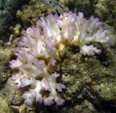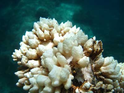 The amount and speed that the corals are bleaching is incredible. Most of the solitary mushroom corals are on their way to be fully bleached, whist other boulder coral seems to be bleaching from the bottom up.